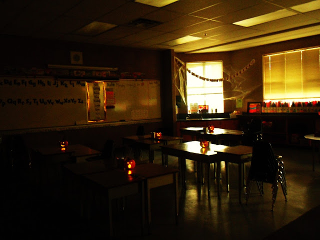 Eight little pumpkins carved last night went to school this morning. A day of treats and costumes and a scary story and a creepy movie. Happy Halloween!